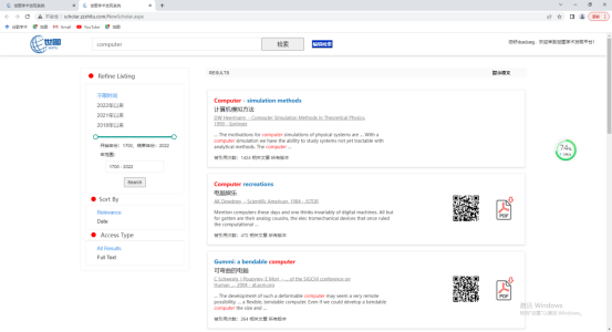 (1)在一站式检索平台查询关键词“computer”;
