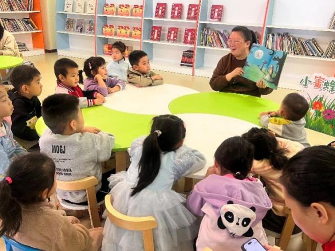 车梅老师与小读者共读绘本《月亮之歌》 田亚婷摄