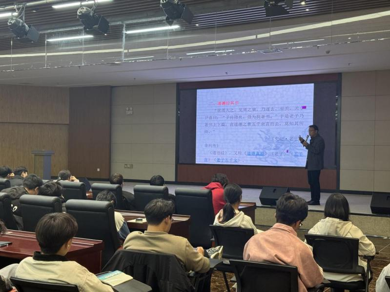 10月27日晚,由图书馆与传统文化研学社联合举办的《道德经》专题讲座,在学院图书馆一楼多功能厅举行。本次讲座以“‘不争’与‘无为’”为主题,由我校副教授苑玉洁担任主讲,带领大家深入理解老子思想在现代生活中的现实意义。