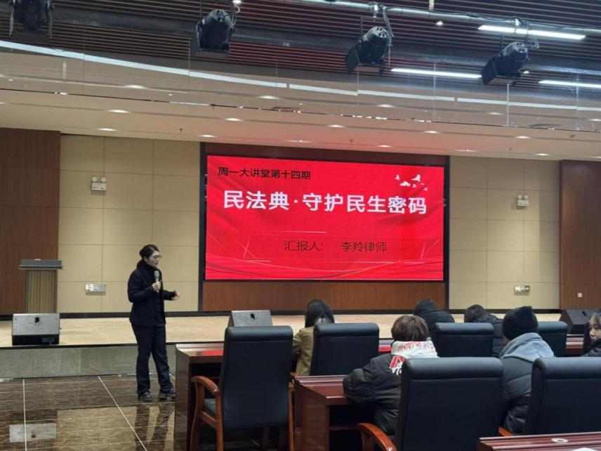 11月24日晚,图书馆与学院传统文化研学社联合主办的“周一大讲堂”系列活动,在学院图书馆多功能厅举办。河南恒翔律师事务所律师李羚,以《溯源民法典·守护民生密码》为题,给学生带来了一堂生动的法治教育课。