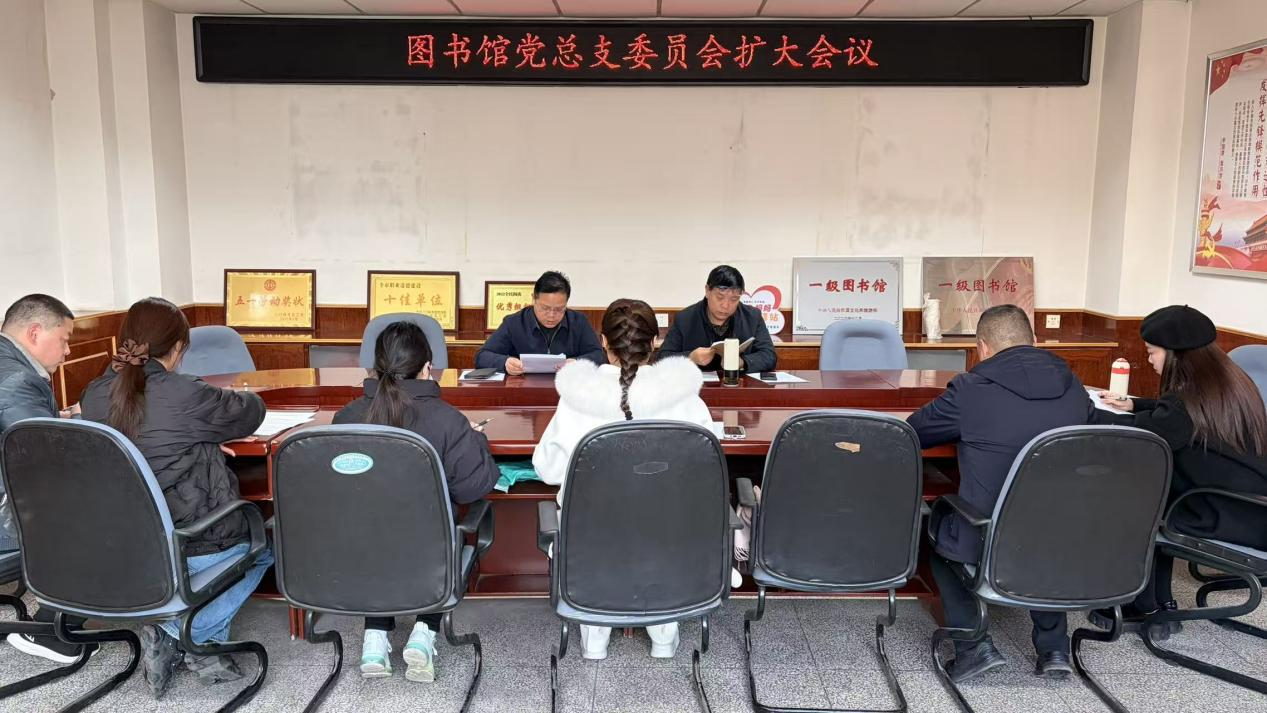12月4日上午,图书馆在二楼会议室召开党总支委员会扩大会议,总支委员和第一、第二党支部书记、组宣委员参加了会议,党总支书记张拴刚主持会议。