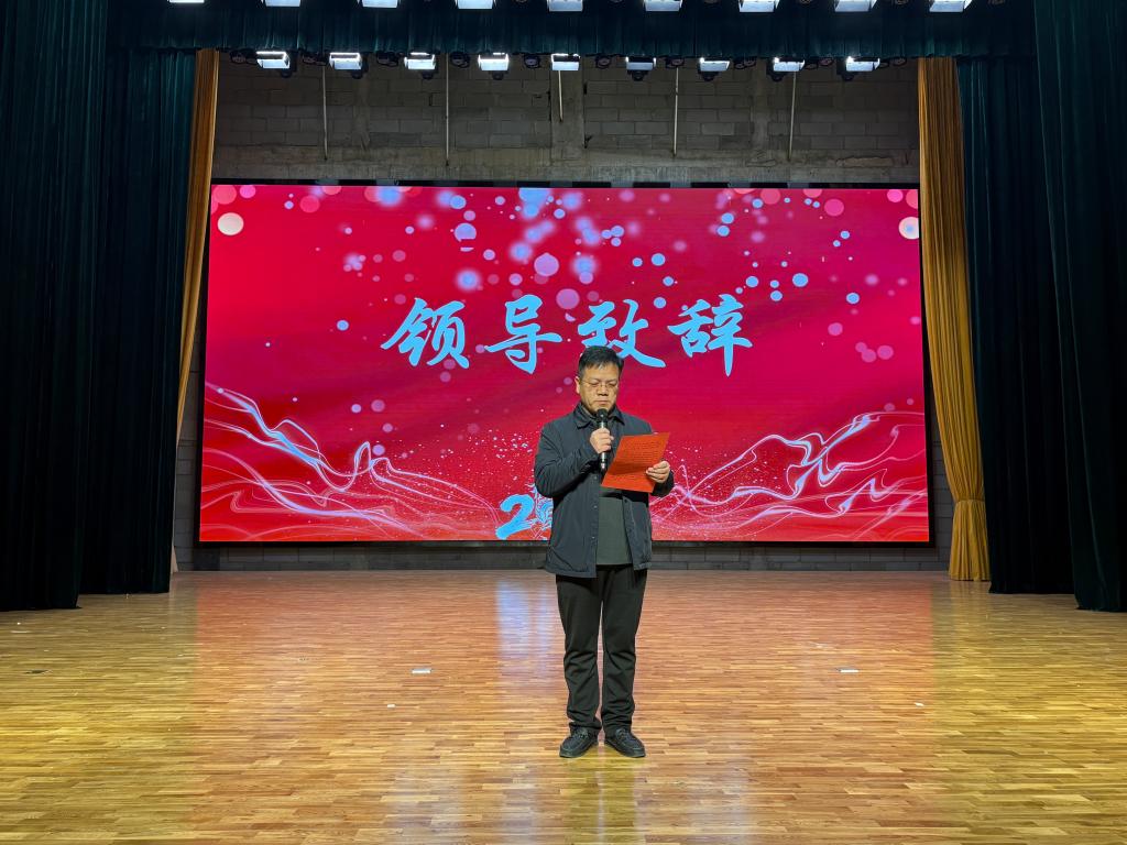 图书馆党总支书记张拴刚作新年致辞。在致辞中回顾了一年来图书馆在阅读推广、文化传播与人才培养方面取得的扎实成绩,肯定了全体馆员在平凡岗位上的默默耕耘与奉献精神,鼓励大家在新的一年中坚守“传承文明、服务育人”初心,以更加开放的姿态、更温暖的服务,扎实做好知识传播与文化育人工作。